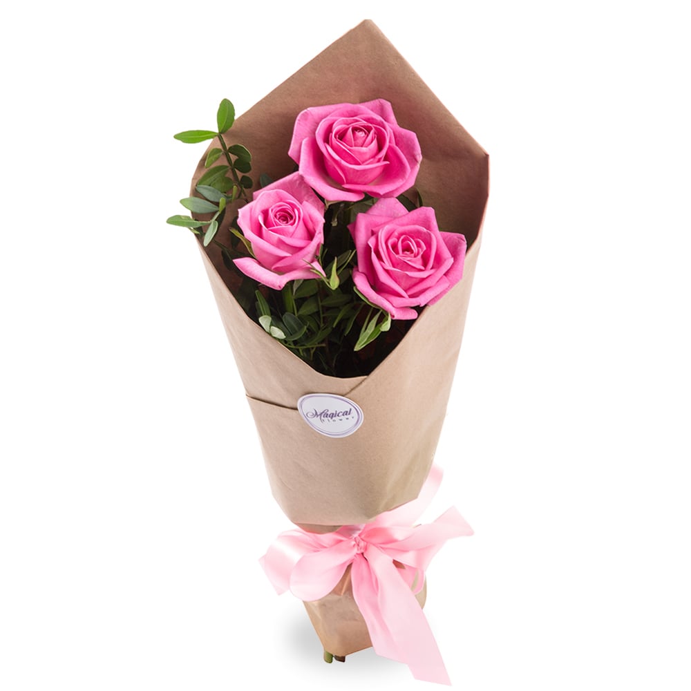 Букет из 3 розовых роз с доставкой по Казахстану – это нежная и утонченная композиция, идеально подходящая для выражения теплых чувств и внимания. Розовые розы символизируют восхищение, нежность и благодарность, делая этот букет прекрасным подарком для близкого человека.